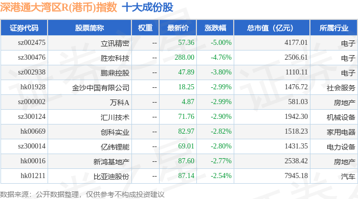 深港通大湾区R(港币)(483090)指数十大成份股详情如下: