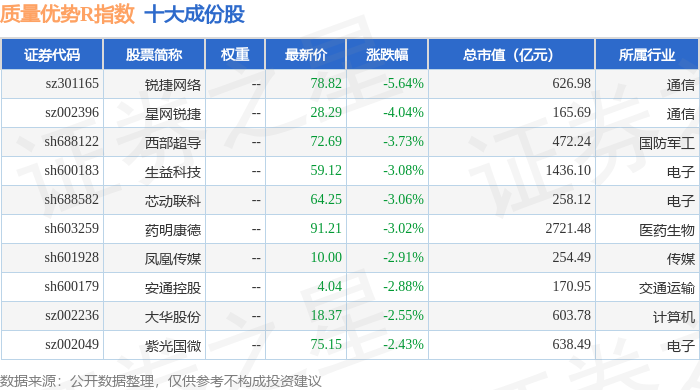 质量优势R(489017)指数十大成份股详情如下:
