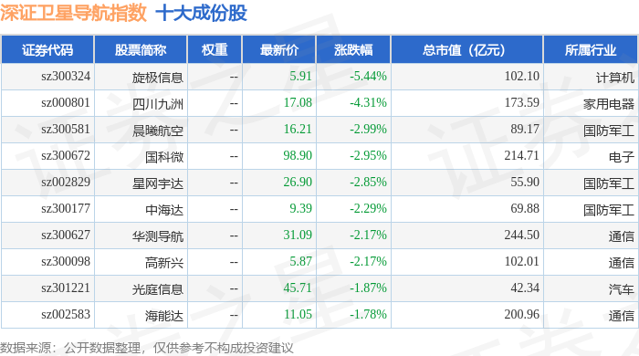 深证卫星导航(970050)指数十大成份股详情如下: