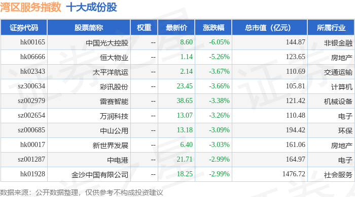 近10日内湾区服务(980011)指数成份股做了调整,新纳入了1只股票,剔除了2只股票。