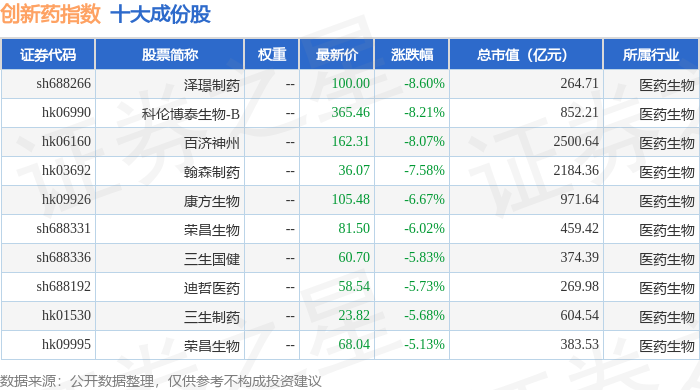 创新药(980086)指数十大成份股详情如下: