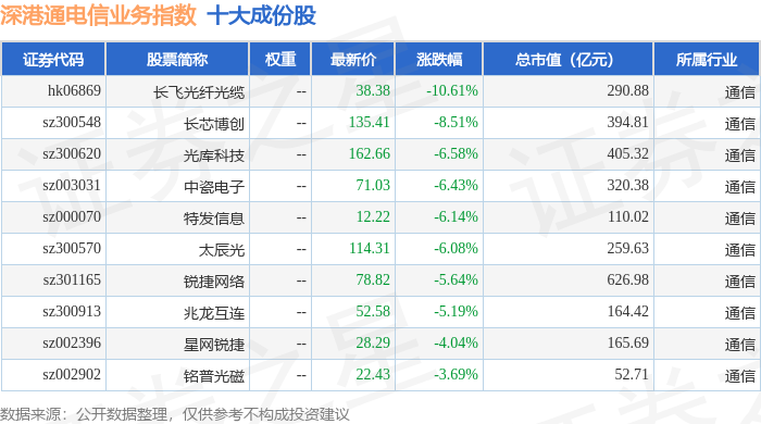 证券之星消息,12月15日,深港通电信业务(983029)指数报收于10460.38点,跌1.71%,成交984.73亿元,换手率1.54%。当日该指数成份股中,上涨的有15家,通宇通讯以10.0%的涨幅领涨,下跌的有59家,长飞光纤光缆以10.61%的跌幅领跌。