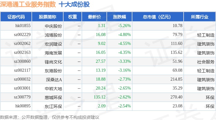 资金流向方面,深港通工业服务(983055)指数成份股当日主力资金净流出合计2309.87万元,游资资金净流出合计2.2亿元,散户资金净流入合计2.43亿元。成份股资金流向详情见下表: