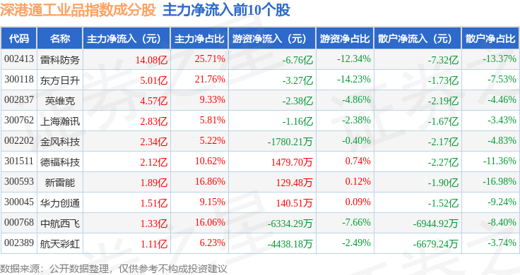 资金流向方面,深港通工业品(983069)指数成份股当日主力资金净流出合计27.54亿元,游资资金净流出合计3.78亿元,散户资金净流入合计31.32亿元。成份股资金流向详情见下表: