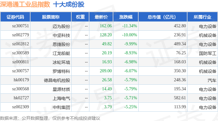 证券之星消息,12月15日,深港通工业品(983069)指数报收于6272.78点,跌1.22%,成交1739.22亿元,换手率2.35%。当日该指数成份股中,上涨的有106家,东方日升以20.02%的涨幅领涨,下跌的有202家,迈为股份以11.34%的跌幅领跌。
