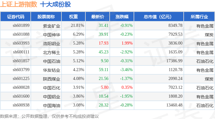 证券之星消息,12月15日,上证上游(000094)指数报收于4258.77点,跌0.39%,成交440.13亿元,换手率0.51%。当日该指数成份股中,上涨的有20家,赤峰黄金以4.78%的涨幅领涨,下跌的有24家,东阳光以3.86%的跌幅领跌。