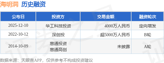 证券之星消息,根据天眼查APP于12月10日公布的信息整理,深圳市海明润超硬材料股份有限公司定向增发融资,融资额4000万人民币,参与投资的机构包括华工科技投资。