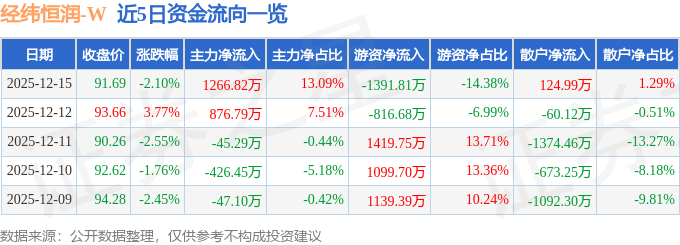 12月15日的资金流向数据方面,主力资金净流入1266.82万元,占总成交额13.09%,游资资金净流出1391.81万元,占总成交额14.38%,散户资金净流入124.99万元,占总成交额1.29%。
