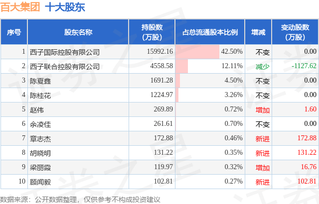 根据百大集团2025年三季报公布的十大股东详情如下: