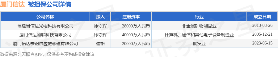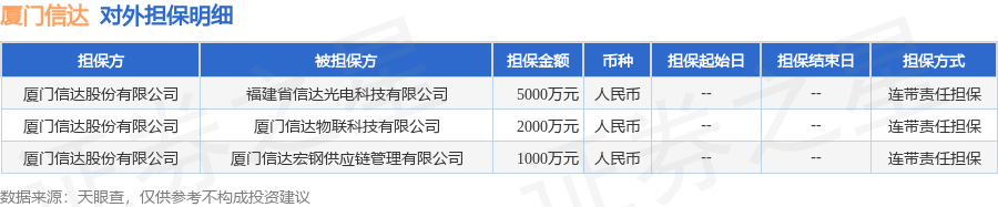 厦门信达12月12日披露3笔对外担保,被担保公司3家。对外担保明细如下表: