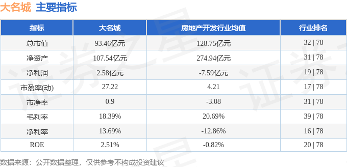 大名城2025年三季报显示,前三季度公司主营收入19.38亿元,同比下降49.15%;归母净利润2.58亿元,同比上升10.66%;扣非净利润2.57亿元,同比上升12.55%;其中2025年第三季度,公司单季度主营收入3.49亿元,同比下降86.47%;单季度归母净利润2.24亿元,同比上升156.86%;单季度扣非净利润2.24亿元,同比上升164.31%;负债率35.66%,投资收益3.44亿元,财务费用1.15亿元,毛利率18.39%。大名城(600094)主营业务:公司以房地产为主业,专业从事住宅地产和商业地产的开发。