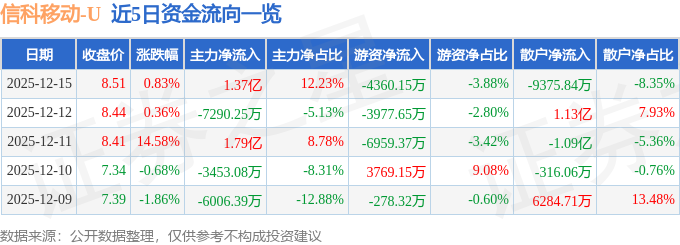 证券之星消息,截至2025年12月15日收盘,信科移动(688387)报收于8.51元,上涨0.83%,换手率6.6%,成交量133.11万手,成交额11.23亿元。
