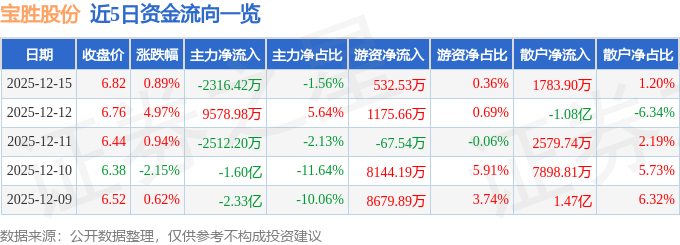 证券之星消息,截至2025年12月15日收盘,宝胜股份(600973)报收于6.82元,上涨0.89%,换手率15.91%,成交量218.14万手,成交额14.83亿元。