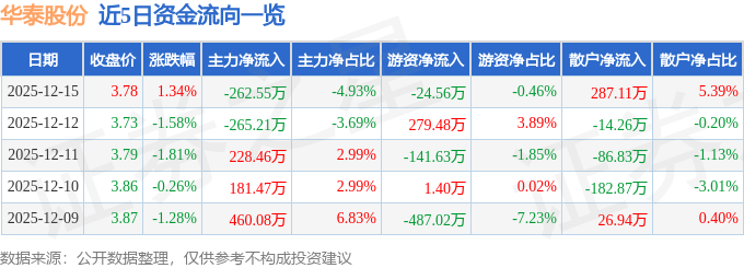 证券之星消息,截至2025年12月15日收盘,华泰股份(600308)报收于3.78元,上涨1.34%,换手率0.93%,成交量14.09万手,成交额5322.07万元。