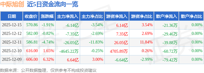 证券之星消息,截至2025年12月15日收盘,中际旭创(300308)报收于570.86元,下跌1.91%,换手率2.72%,成交量30.1万手,成交额173.31亿元。