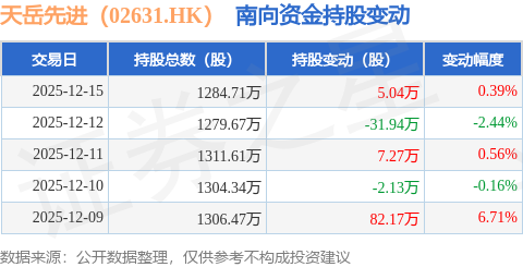 证券之星消息,12月15日南向资金增持5.04万股天岳先进(02631.HK)。近5个交易日中,获南向资金增持的有3天,累计净增持60.41万股。近20个交易日中,获南向资金增持的有10天,累计净增持53.31万股。截至目前,南向资金持有天岳先进(02631.HK)1284.71万股,占公司已发行普通股的23.39%。