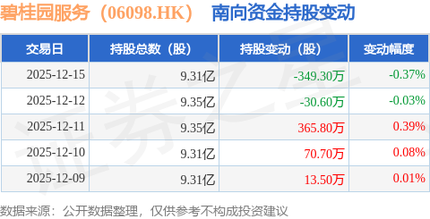 证券之星消息,12月15日南向资金减持349.3万股碧桂园服务(06098.HK)。近5个交易日中,获南向资金增持的有3天,累计净增持70.1万股。近20个交易日中,获南向资金减持的有13天,累计净减持1793.22万股。截至目前,南向资金持有碧桂园服务(06098.HK)9.31亿股,占公司已发行普通股的27.84%。