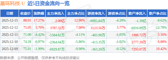 证券之星消息,截至2025年12月15日收盘,星环科技(688031)报收于88.01元,上涨17.27%,换手率20.22%,成交量19.0万手,成交额16.13亿元。