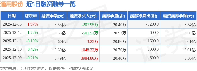 证券之星消息,截至2025年12月15日收盘,通用股份(601500)报收于4.65元,上涨1.97%,换手率2.44%,成交量38.63万手,成交额1.79亿元。