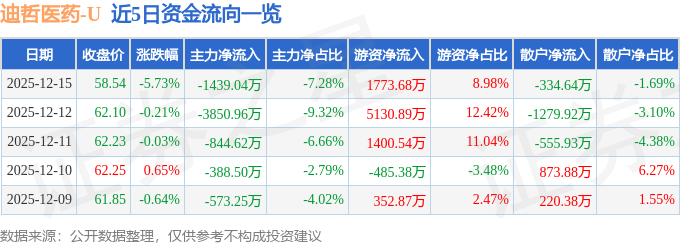 证券之星消息,截至2025年12月15日收盘,迪哲医药(688192)报收于58.54元,下跌5.73%,换手率0.73%,成交量3.31万手,成交额1.98亿元。