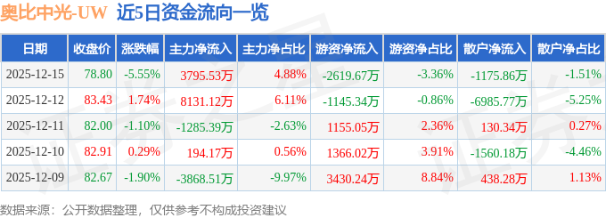 证券之星消息,截至2025年12月15日收盘,奥比中光(688322)报收于78.8元,下跌5.55%,换手率3.31%,成交量9.68万手,成交额7.79亿元。