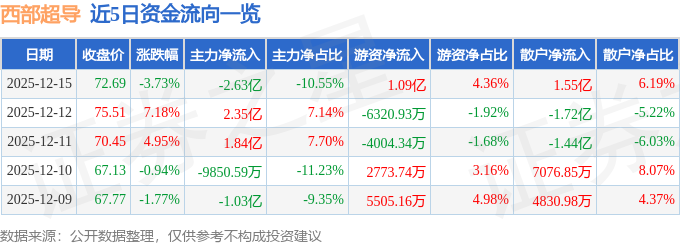 12月15日的资金流向数据方面,主力资金净流出2.63亿元,占总成交额10.55%,游资资金净流入1.09亿元,占总成交额4.36%,散户资金净流入1.55亿元,占总成交额6.19%。