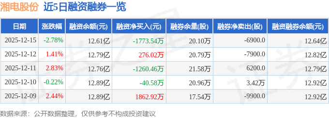 证券之星消息,截至2025年12月15日收盘,湘电股份(600416)报收于13.99元,下跌2.78%,换手率2.65%,成交量35.08万手,成交额4.96亿元。