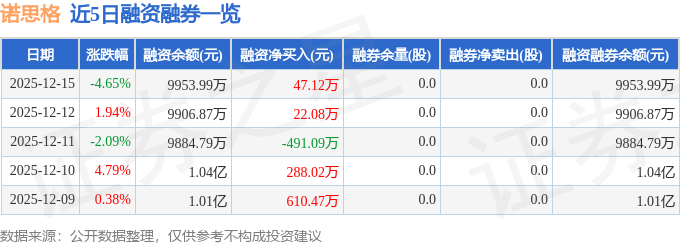诺思格融资融券信息显示,融资方面,当日融资买入1714.86万元,融资偿还1667.75万元,融资净买入47.12万元。融券方面,融券卖出0.0股,融券偿还0.0股,融券余量0.0股,融券余额0.0万元。融资融券余额9953.99万元。