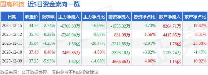 证券之星消息,截至2025年12月15日收盘,固高科技(301510)报收于34.78元,下跌2.74%,换手率4.25%,成交量11.87万手,成交额4.17亿元。