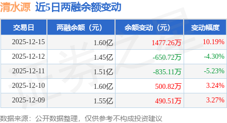 证券之星消息,12月15日,清水源(300437)融资买入5328.6万元,融资偿还3851.33万元,融资净买入1477.26万元,融资余额1.6亿元,近20个交易日中有11个交易日出现融资净买入。