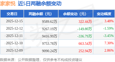 证券之星消息,12月15日,家家悦(603708)融资买入1145.33万元,融资偿还810.1万元,融资净买入335.23万元,融资余额9571.29万元。