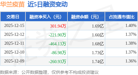 证券之星消息,12月15日,华兰疫苗(301207)融资买入1331.79万元,融资偿还1029.85万元,融资净买入301.94万元,融资余额1.69亿元。