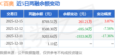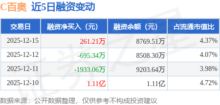 证券之星消息,12月15日,C百奥(688796)融资买入2696.28万元,融资偿还2435.08万元,融资净买入261.21万元,融资余额8769.51万元。