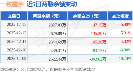 证券之星消息,12月15日,一致魔芋(920273)融资买入614.85万元,融资偿还467.7万元,融资净买入147.15万元,融资余额2827.03万元,近3个交易日已连续净买入累计387.73万元,近20个交易日中有11个交易日出现融资净买入。