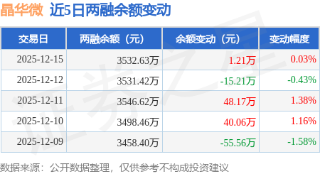 证券之星消息,12月15日,晶华微(688130)融资买入104.95万元,融资偿还103.73万元,融资净买入1.21万元,融资余额3532.63万元。