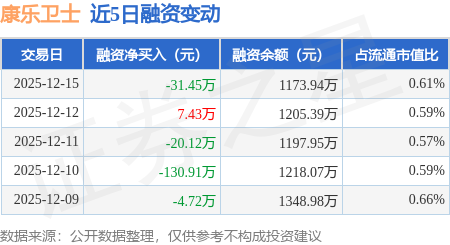 证券之星消息,12月15日,康乐卫士(920575)融资买入38.85万元,融资偿还70.3万元,融资净卖出31.45万元,融资余额1173.94万元。