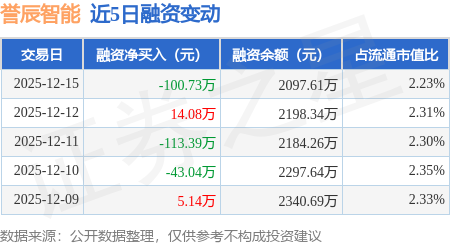 证券之星消息,12月15日,誉辰智能(688638)融资买入95.52万元,融资偿还196.25万元,融资净卖出100.73万元,融资余额2097.61万元。