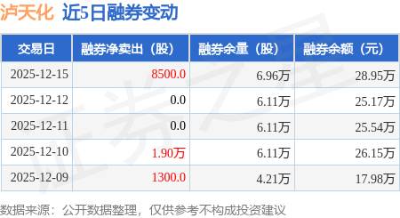 融券方面,当日融券卖出8500.0股,融券偿还0.0股,融券净卖出8500.0股,融券余量6.96万股。