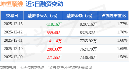 证券之星消息,12月15日,坤恒顺维(688283)融资买入1717.02万元,融资偿还1835.19万元,融资净卖出118.16万元,融资余额8207.16万元。