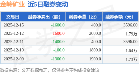 证券之星消息,12月15日,金岭矿业(000655)融资买入197.1万元,融资偿还402.24万元,融资净卖出205.13万元,融资余额1.72亿元。