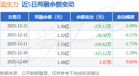 证券之星消息,12月15日,迪生力(603335)融资买入221.86万元,融资偿还497.99万元,融资净卖出276.13万元,融资余额1.3亿元,近20个交易日中有12个交易日出现融资净买入。