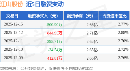 证券之星消息,12月15日,江山股份(600389)融资买入380.36万元,融资偿还881.26万元,融资净卖出500.9万元,融资余额2.66亿元。
