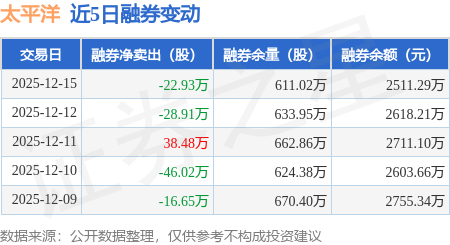 证券之星消息,12月15日,太平洋(601099)融资买入6052.91万元,融资偿还6628.82万元,融资净卖出575.92万元,融资余额22.55亿元。