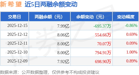 证券之星消息,12月15日,新 希 望(000876)融资买入1432.94万元,融资偿还2124.84万元,融资净卖出691.9万元,融资余额7.93亿元。