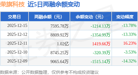 证券之星消息,12月15日,荣旗科技(301360)融资买入607.49万元,融资偿还1821.62万元,融资净卖出1214.13万元,融资余额7595.78万元。