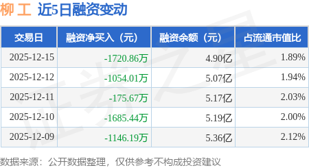 证券之星消息,12月15日,柳 工(000528)融资买入1307.52万元,融资偿还3028.38万元,融资净卖出1720.86万元,融资余额4.9亿元。