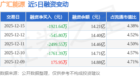 证券之星消息,12月15日,广汇能源(600256)融资买入2129.72万元,融资偿还4051.36万元,融资净卖出1921.64万元,融资余额14.21亿元,近20个交易日中有11个交易日出现融资净买入。
