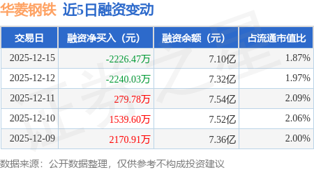 证券之星消息,12月15日,华菱钢铁(000932)融资买入1991.74万元,融资偿还4218.21万元,融资净卖出2226.47万元,融资余额7.1亿元,近20个交易日中有12个交易日出现融资净买入。