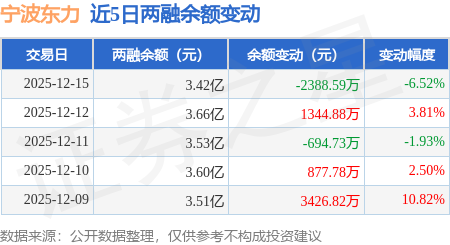 证券之星消息,12月15日,宁波东力(002164)融资买入5895.39万元,融资偿还8283.98万元,融资净卖出2388.59万元,融资余额3.42亿元,近20个交易日中有15个交易日出现融资净买入。