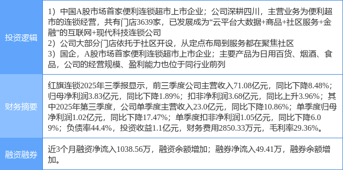 证券之星消息,红旗连锁12月16日涨停收盘,收盘价6.85元。该股于9点32分涨停,2次打开涨停,截止收盘封单资金为1.46亿元,占其流通市值1.86%。